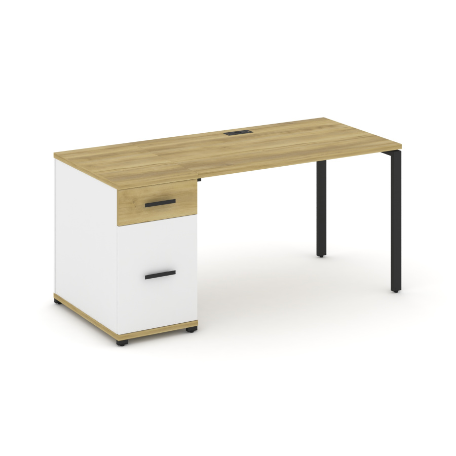 Concept Стол рабочий с 1 опорной тумбой CN.SP-406 W Дуб Винченцо/Белый Бриллиант/Металл Черный 1600*720*750
