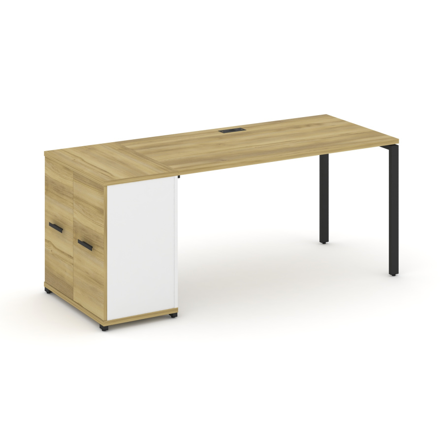 Concept Стол рабочий с опорным распаш. шкафом CN.SP-219 W Дуб Винченцо/Белый Бриллиант/Металл Черный 1800*720*750