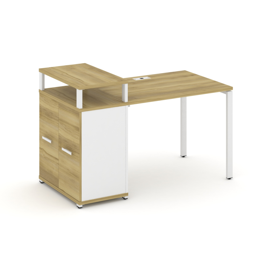 Concept Стол рабочий с опорным распаш. шкафом с верх. горизонтом CN.SP-221 W Дуб Винченцо/Белый Бриллиант/Металл Белый 1400*720*917