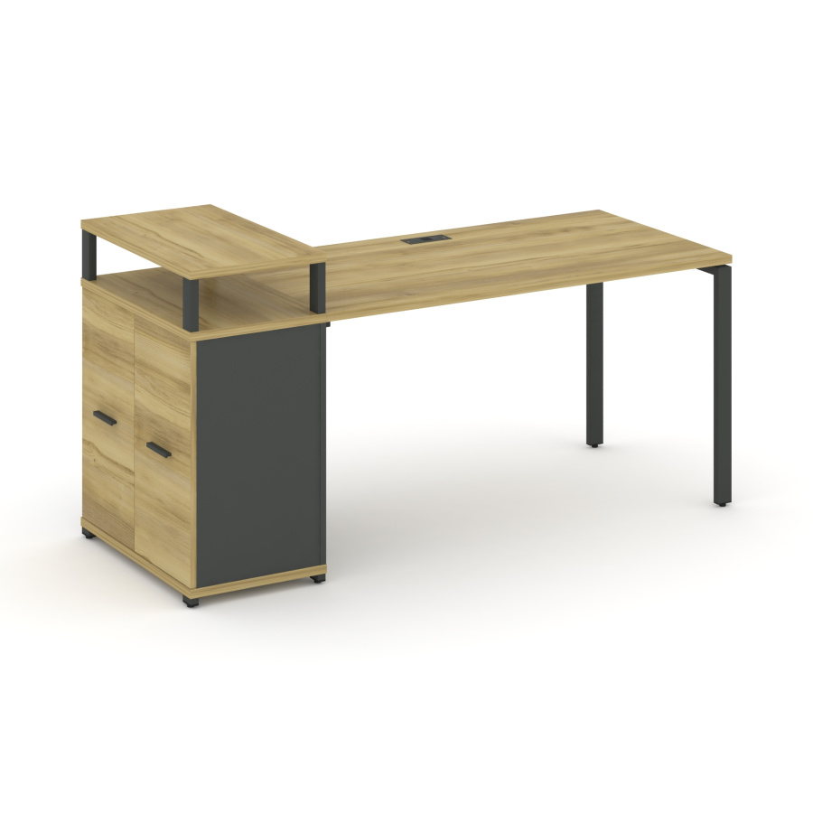 Concept Стол рабочий с опорным распаш. шкафом с верх. горизонтом CN.SP-222 W Дуб Винченцо/Антрацит/Металл Антрацит 1600*720*917