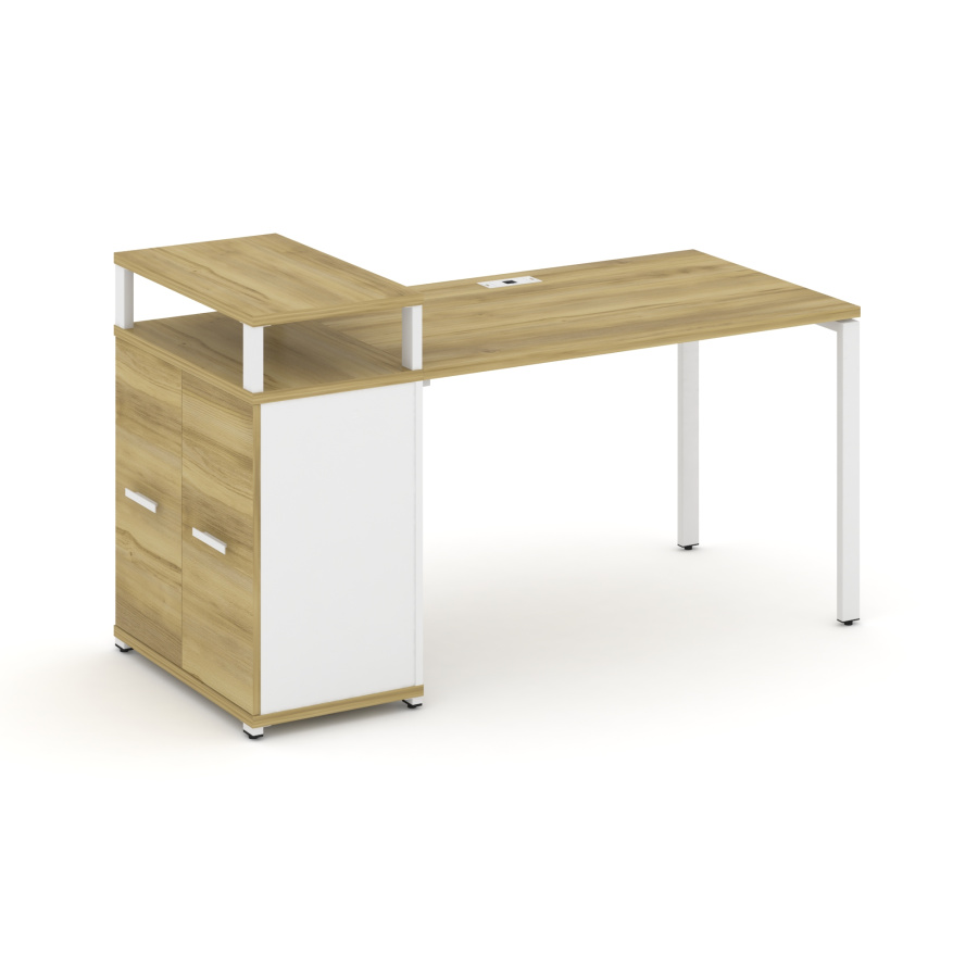 Concept Стол рабочий с опорным распаш. шкафом с верх. горизонтом CN.SP-222 W Дуб Винченцо/Белый Бриллиант/Металл Белый 1600*720*917