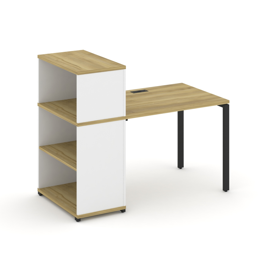 Concept Стол рабочий с опорным стеллажом с надставкой низ. CN.SP-209 Дуб Винченцо/Белый Бриллиант/Металл Черный 1400*720*1140