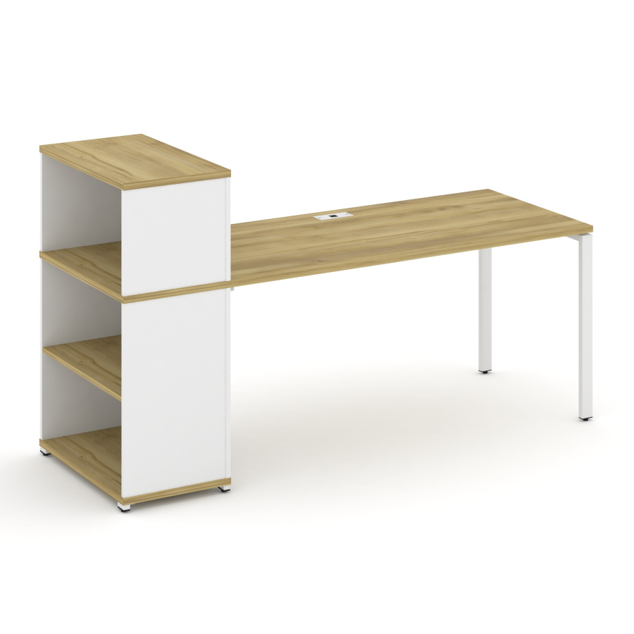 Concept Стол рабочий с опорным стеллажом с надставкой низ. CN.SP-212 Дуб Винченцо/Белый Бриллиант/Металл Белый 2000*720*1140