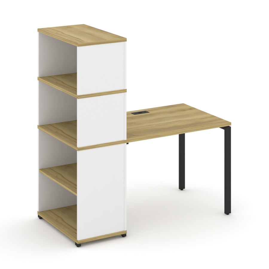 Concept Стол рабочий с опорным стеллажом с надставкой выс. CN.SP-213 Дуб Винченцо/Белый Бриллиант/Металл Черный 1400*720*1530