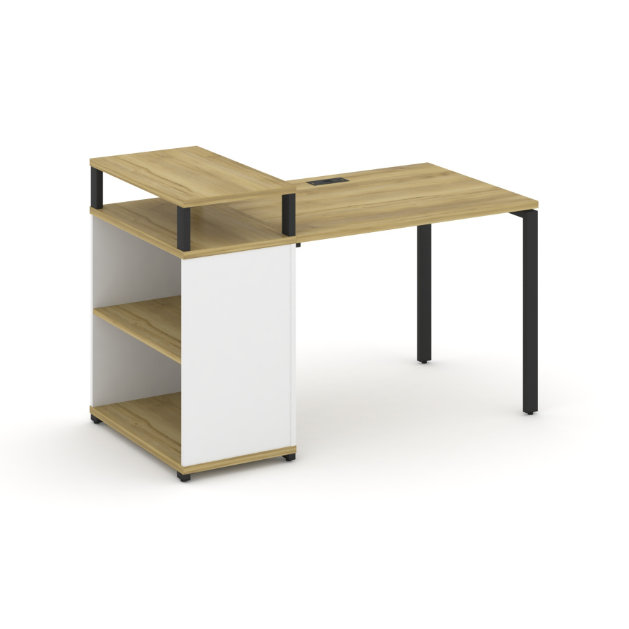 Concept Стол рабочий с опорным стеллажом с верх. горизонтом CN.SP-205 Дуб Винченцо/Белый Бриллиант/Металл Черный 1400*720*917