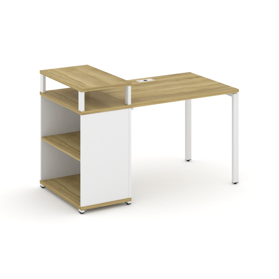 Concept Стол рабочий с опорным стеллажом с верх. горизонтом CN.SP-205 Дуб Винченцо/Белый Бриллиант/Металл Белый 1400*720*917