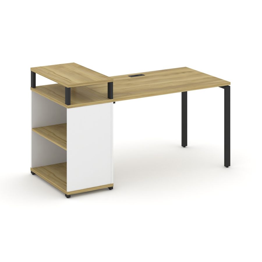 Concept Стол рабочий с опорным стеллажом с верх. горизонтом CN.SP-206 Дуб Винченцо/Белый Бриллиант/Металл Черный 1600*720*917