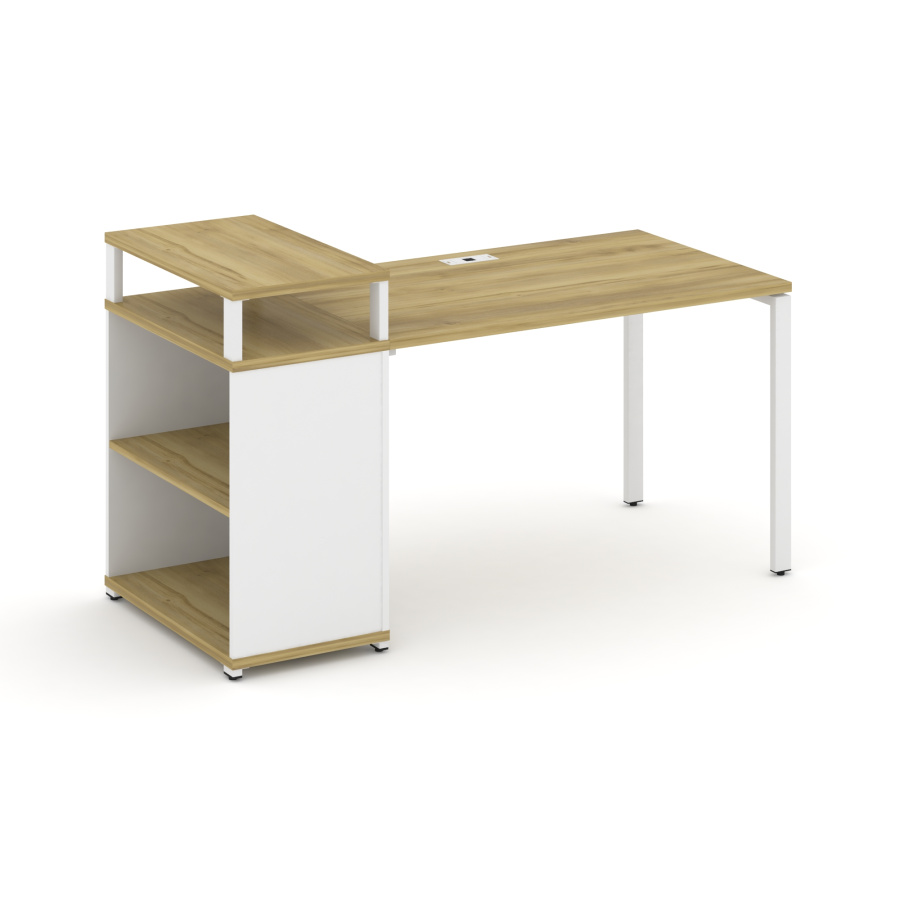 Concept Стол рабочий с опорным стеллажом с верх. горизонтом CN.SP-206 Дуб Винченцо/Белый Бриллиант/Металл Белый 1600*720*917