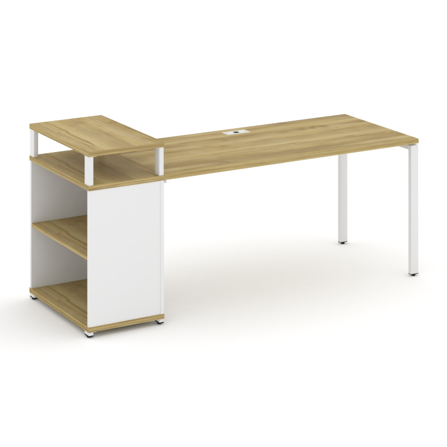 Concept Стол рабочий с опорным стеллажом с верх. горизонтом CN.SP-208 Дуб Винченцо/Белый Бриллиант/Металл Белый 2000*720*917