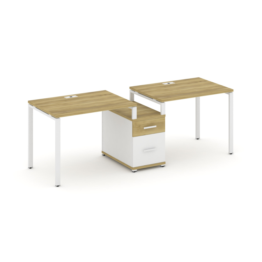 Concept Рабочая станция 2 места с 1 опорной тумбой CN.ORS-305 W Дуб Винченцо/Белый Бриллиант/Металл Белый 2272*720*750