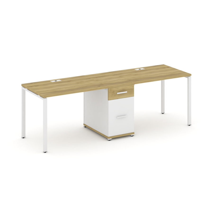 Concept Рабочая станция 2 места с 1 опорной тумбой CN.ORS-405 W Дуб Винченцо/Белый Бриллиант/Металл Белый 2380*720*750