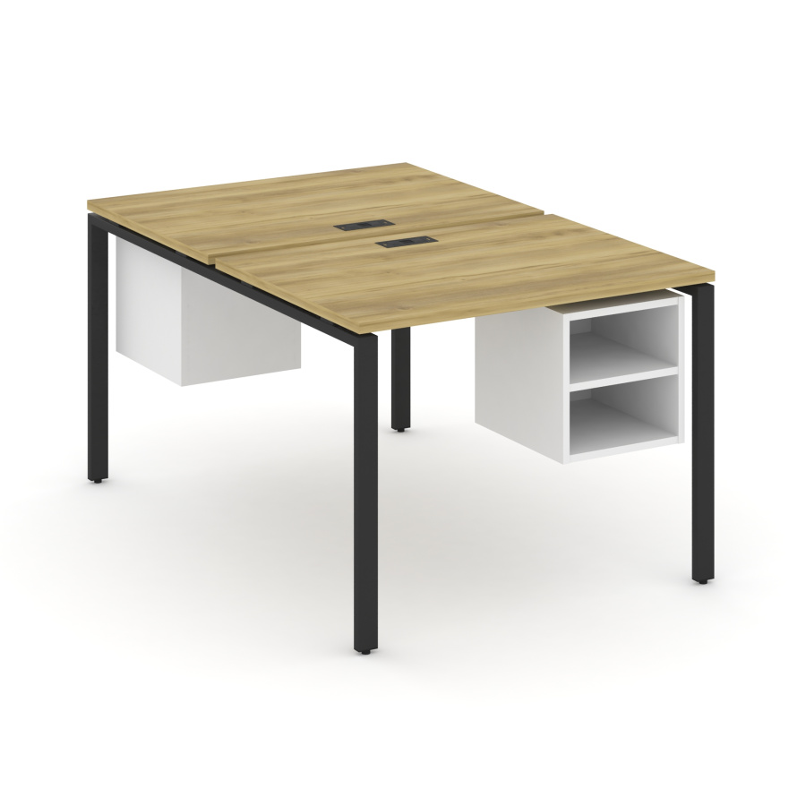 Concept Рабочая станция 2 сторонняя с подвесными тумбами на 2 места CN.DRS-105 Дуб Винченцо/Белый Бриллиант/Металл Черный 980*1480*750