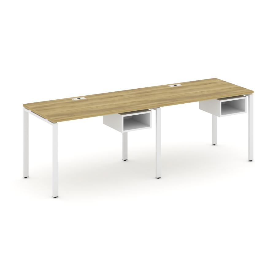 Concept Рабочая станция односторонняя с подвес. тумбами 2 места CN.ORS-102 Дуб Винченцо/Белый Бриллиант/Металл Белый 2360*720*750
