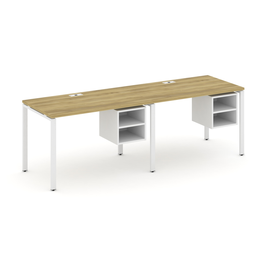 Concept Рабочая станция односторонняя с подвес. тумбами 2 места CN.ORS-106 Дуб Винченцо/Белый Бриллиант/Металл Белый 2360*720*750