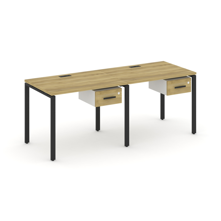 Concept Рабочая станция односторонняя с подвес. тумбами 2 места CN.ORS-109 W Дуб Винченцо/Белый Бриллиант/Металл Черный 1960*720*750