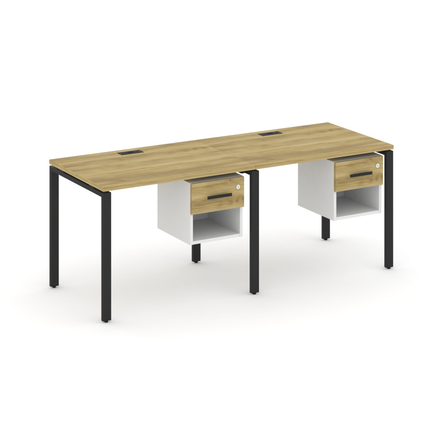 Concept Рабочая станция односторонняя с подвес. тумбами 2 места CN.ORS-117 W Дуб Винченцо/Белый Бриллиант/Металл Черный 1960*720*750