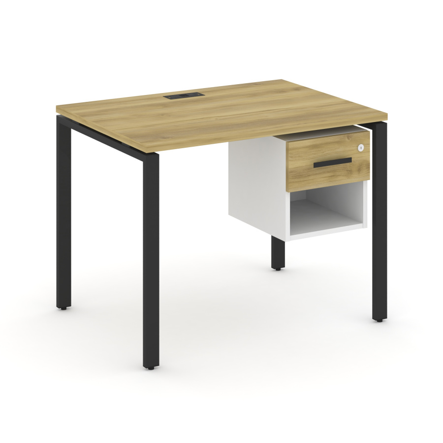 Concept Стол рабочий с подвесной тумбой 1 открытой нишей и одним ящ. CN.SP-117 W Дуб Винченцо/Белый Бриллиант/Металл Черный 980*720*750