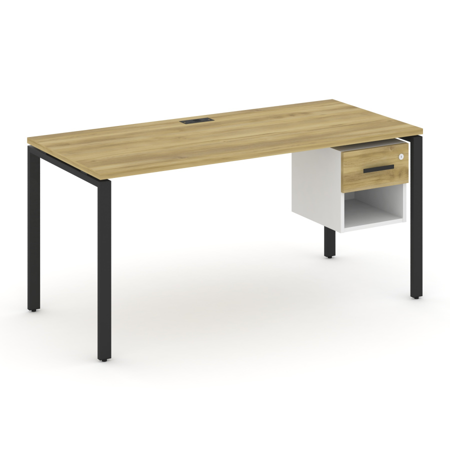 Concept Стол рабочий с подвесной тумбой 1 открытой нишей и одним ящ. CN.SP-120 W Дуб Винченцо/Белый Бриллиант/Металл Черный 1580*720*750