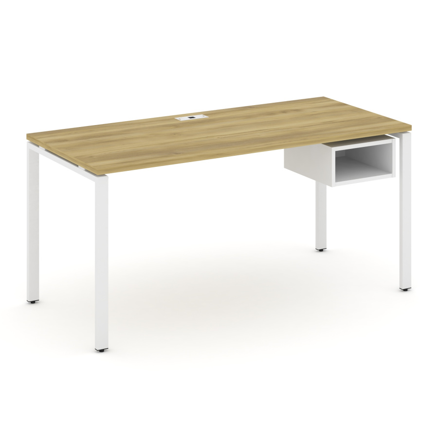 Concept Стол рабочий с подвесной тумбой с 1 открытой нишей CN.SP-104 Дуб Винченцо/Белый Бриллиант/Металл Белый 1580*720*750