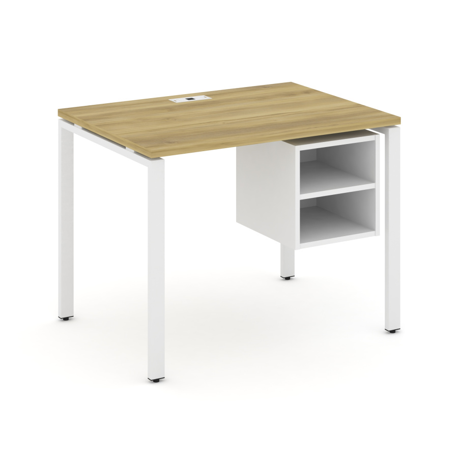 Concept Стол рабочий с подвесной тумбой с 2 открытыми нишами CN.SP-105 Дуб Винченцо/Белый Бриллиант/Металл Белый 980*720*750