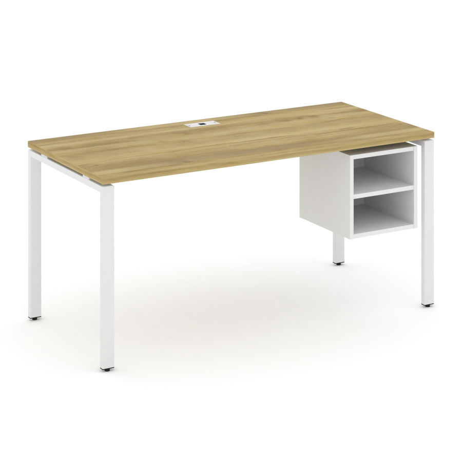 Concept Стол рабочий с подвесной тумбой с 2 открытыми нишами CN.SP-108 Дуб Винченцо/Белый Бриллиант/Металл Белый 1580*720*750