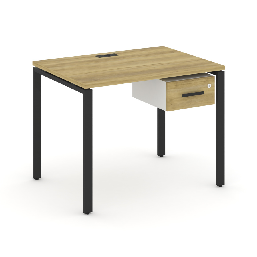 Concept Стол рабочий с подвесной тумбой с одним ящ. CN.SP-109 W Дуб Винченцо/Белый Бриллиант/Металл Черный 980*720*750