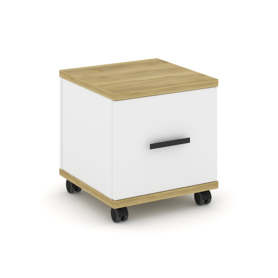 Concept Тумба мобильная 1 распаш. фасад CN.TUM-007 B Дуб Винченцо/Белый Бриллиант/Металл Черный 420*420*448