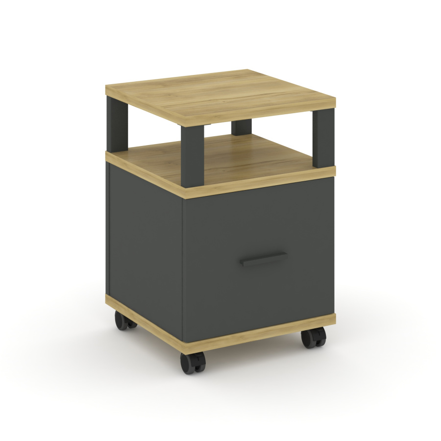 Concept Тумба мобильная 1 распаш. фасад с надставкой CN.TUM-008 A Дуб Винченцо/Антрацит/Металл Антрацит 420*420*615