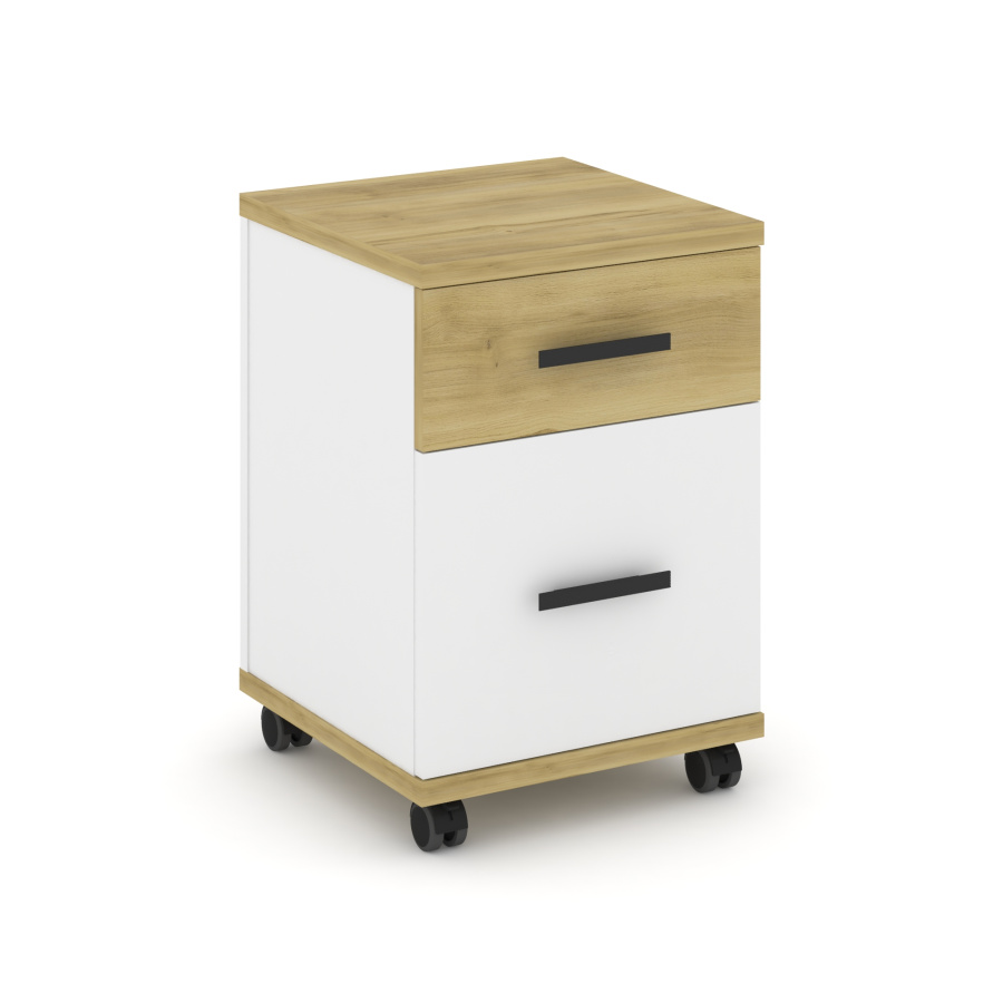Concept Тумба мобильная 1 ящ.+1 распаш. фасад CN.TUM-009 B Дуб Винченцо/Белый Бриллиант/Металл Черный 420*420*615