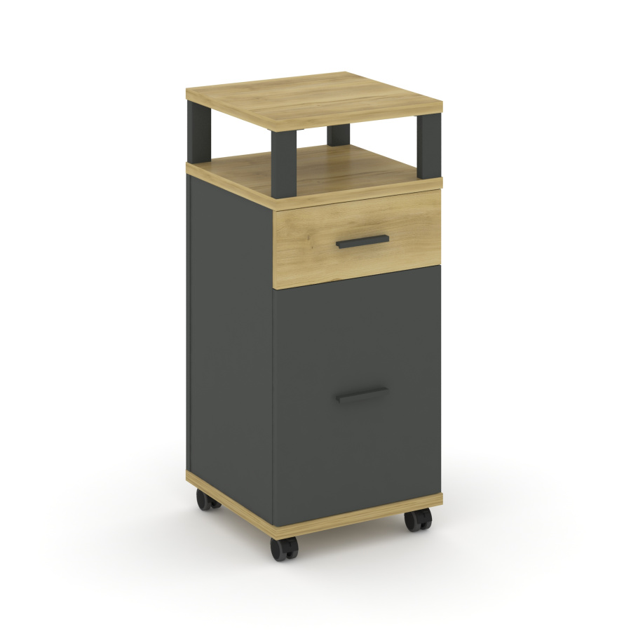 Concept Тумба мобильная 1 ящ.+1 распаш. фасад с надставкой CN.TUM-012 A Дуб Винченцо/Антрацит/Металл Антрацит 420*420*949