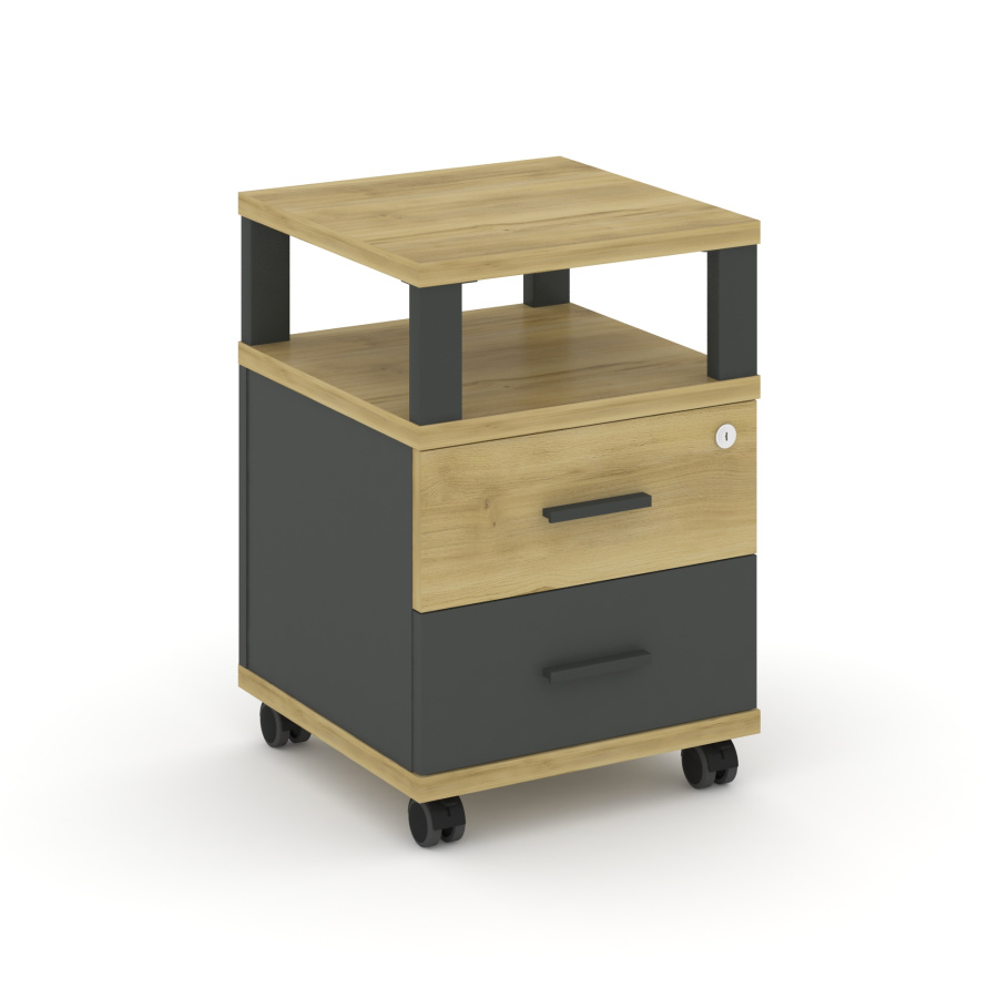 Concept Тумба мобильная 2 ящ. с надставкой CN.TUM-002 A Дуб Винченцо/Антрацит/Металл Антрацит 420*420*615