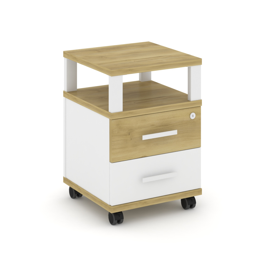 Concept Тумба мобильная 2 ящ. с надставкой CN.TUM-002 W Дуб Винченцо/Белый Бриллиант/Металл Белый 420*420*615