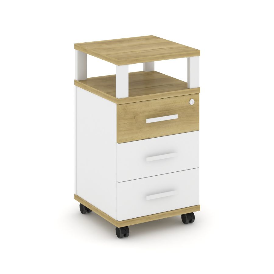 Concept Тумба мобильная 3 ящ. с надставкой CN.TUM-004 W Дуб Винченцо/Белый Бриллиант/Металл Белый 420*420*782