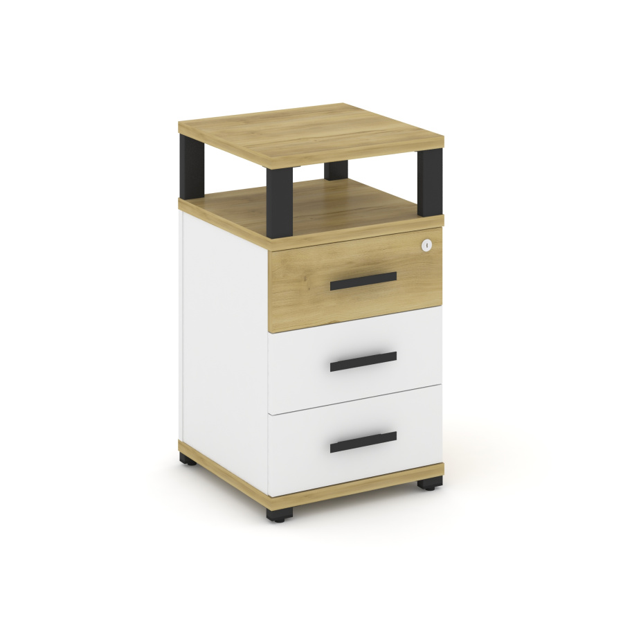 Concept Тумба приставная 3 ящ. с надставкой CN.TUP-003 W Дуб Винченцо/Белый Бриллиант/Металл Черный 420*420*750
