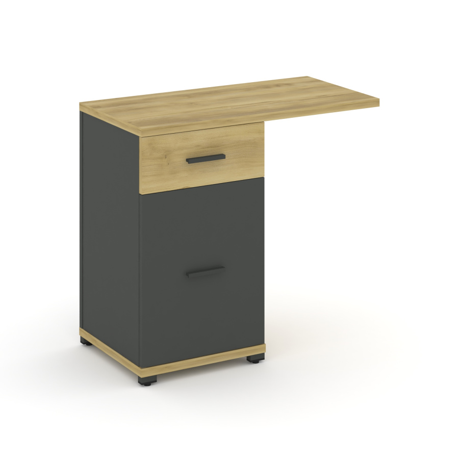 Concept Тумба приставная узкая 1 ящ.+1 распаш. фасад со свесом CN.TUS-003 W Дуб Винченцо/Антрацит/Металл Антрацит 836*420*750