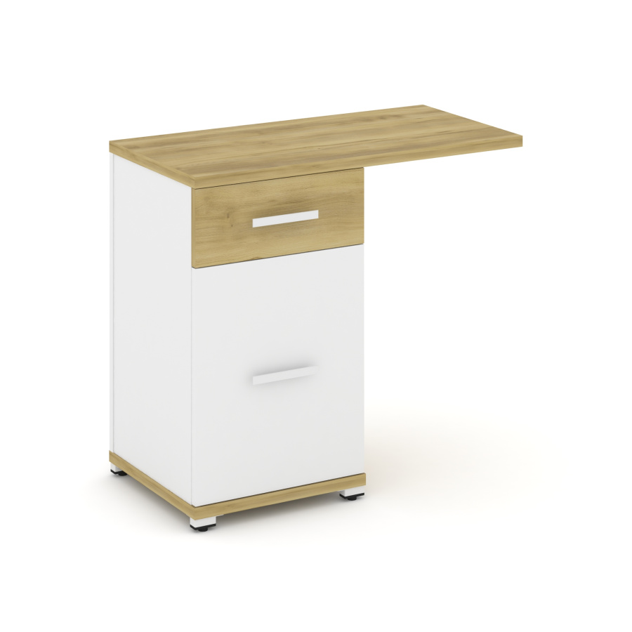 Concept Тумба приставная узкая 1 ящ.+1 распаш. фасад со свесом CN.TUS-003 W Дуб Винченцо/Белый Бриллиант/Металл Белый 836*420*750