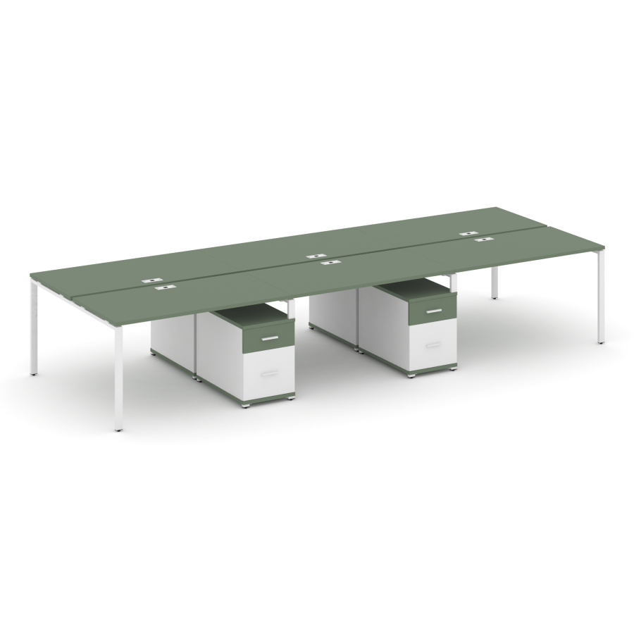 Concept Рабочая станция 6 мест с 2 двухсторонними опорными тумбами CN.DRS-347 W Кобо/Белый Бриллиант/Металл Белый 4140*1480*750
