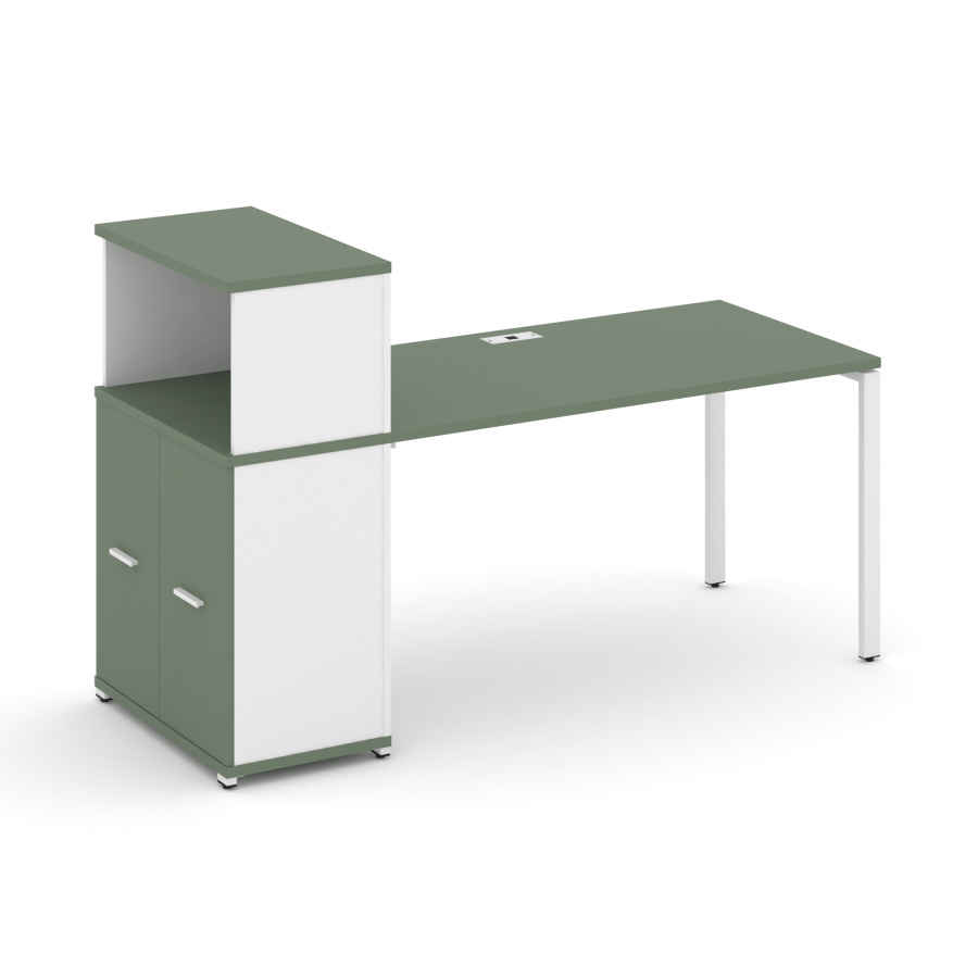 Concept Стол рабочий с опорным распаш. шкафом с надставкой низ. CN.SP-225 W Кобо/Белый Бриллиант/Металл Белый 1400*720*1140