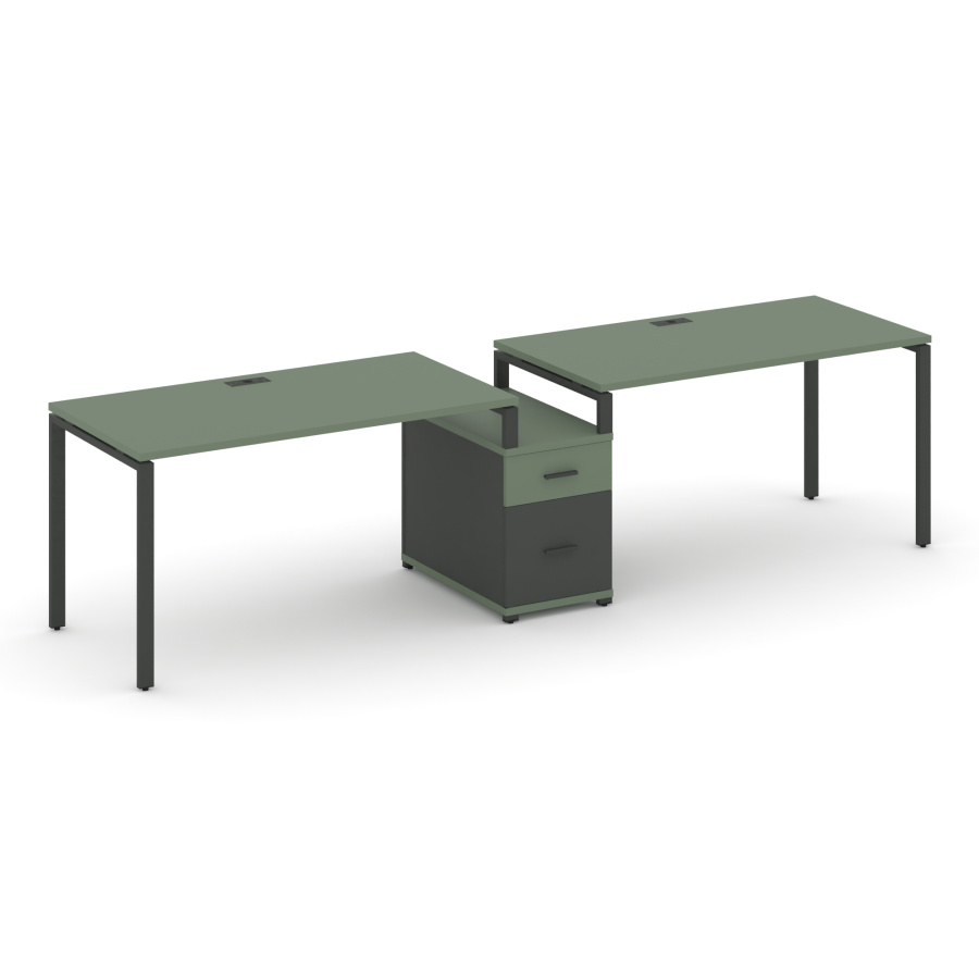Concept Рабочая станция 2 места с 1 опорной тумбой CN.ORS-305 W Кобо/Антрацит/Металл Антрацит 2272*720*750