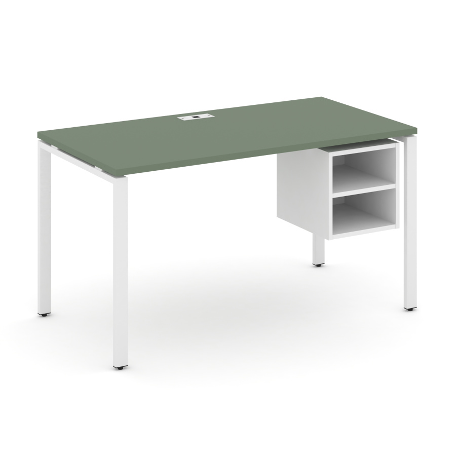 Concept Стол рабочий с подвесной тумбой с 2 открытыми нишами CN.SP-108 Кобо/Белый Бриллиант/Металл Белый 1580*720*750