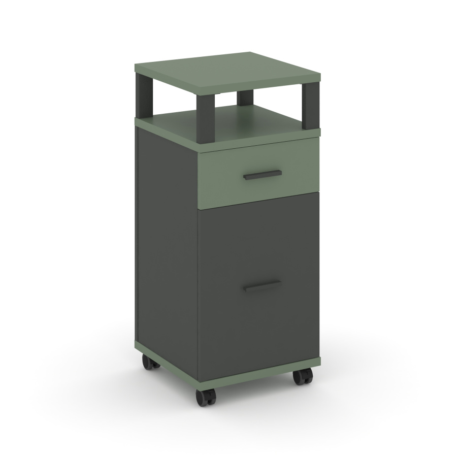 Concept Тумба мобильная 1 ящ.+1 распаш. фасад с надставкой CN.TUM-012 A Кобо/Антрацит/Металл Антрацит 420*420*949