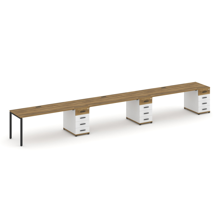 Concept Рабочая станция 3 места с 3 опорными тумбами CN.ORS-444 W Сандал Янтарный/Белый Бриллиант/Металл Черный 6000*720*750