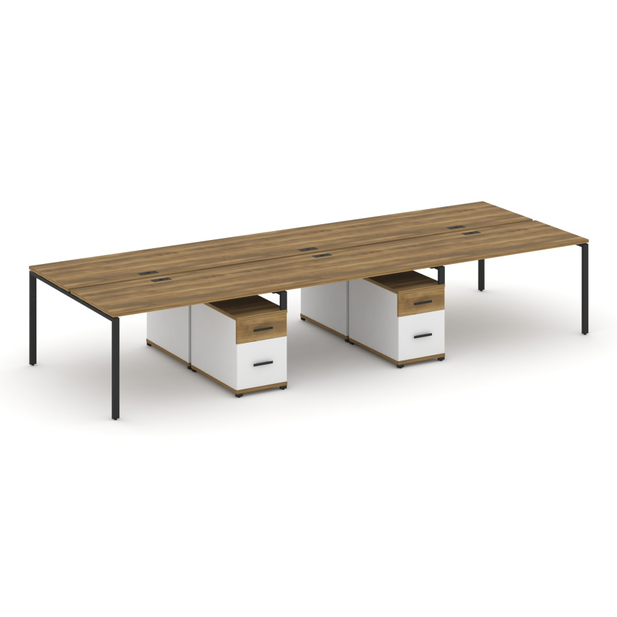 Concept Рабочая станция 6 мест с 2 двухсторонними опорными тумбами CN.DRS-347 W Сандал Янтарный/Белый Бриллиант/Металл Черный 4140*1480*750