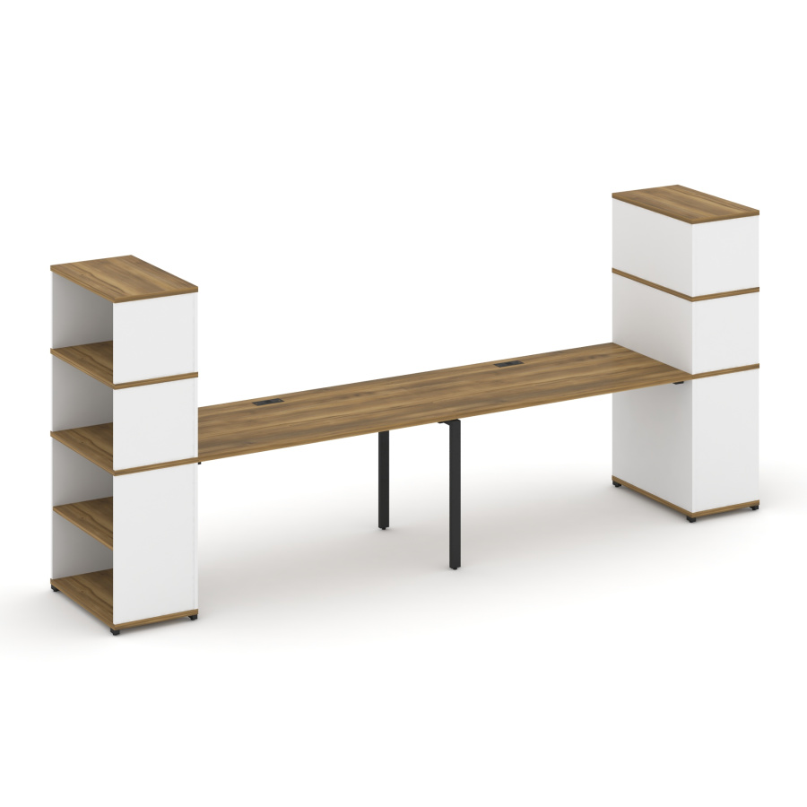 Concept Рабочая станция с опорными стеллажами с надставкой выс. CN.ORS-215 Сандал Янтарный/Белый Бриллиант/Металл Черный 3600*720*1530