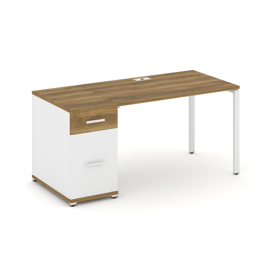Concept Стол рабочий с 1 опорной тумбой CN.SP-406 W Сандал Янтарный/Белый Бриллиант/Металл Белый 1600*720*750