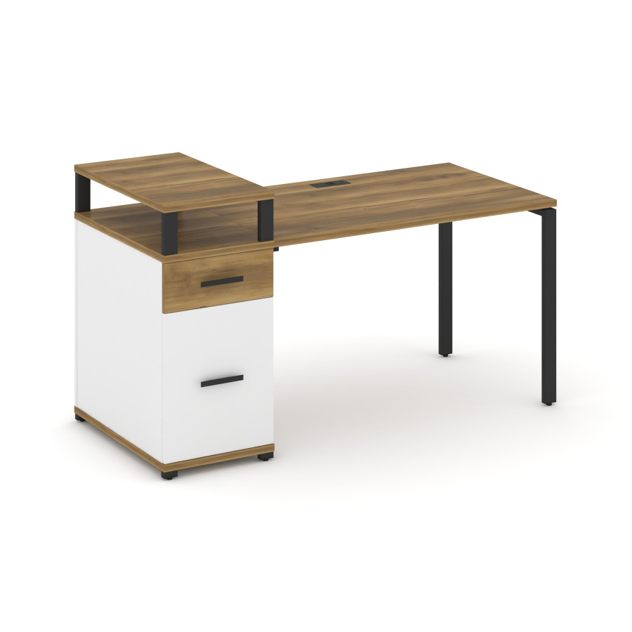 Concept Стол рабочий с 1 опорной тумбой CN.SP-414 W Сандал Янтарный/Белый Бриллиант/Металл Черный 1600*720*917