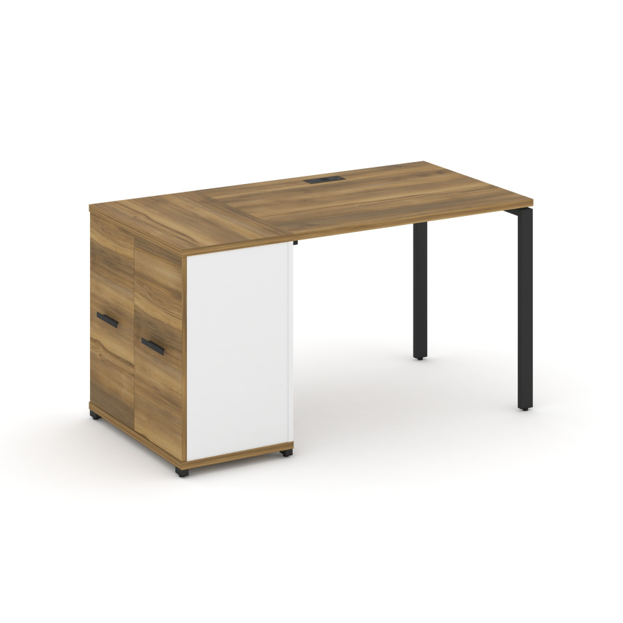 Concept Стол рабочий с опорным распаш. шкафом CN.SP-217 W Сандал Янтарный/Белый Бриллиант/Металл Черный 1400*720*750