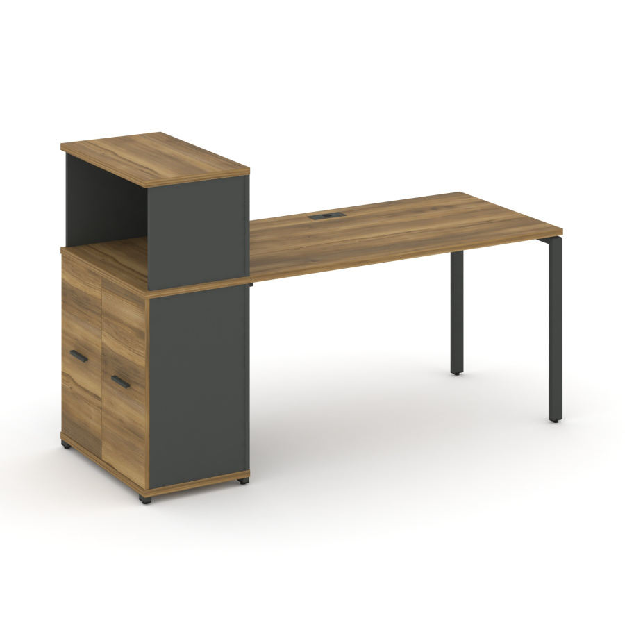 Concept Стол рабочий с опорным распаш. шкафом с надставкой низ. CN.SP-225 W Сандал Янтарный/Антрацит/Металл Антрацит 1400*720*1140