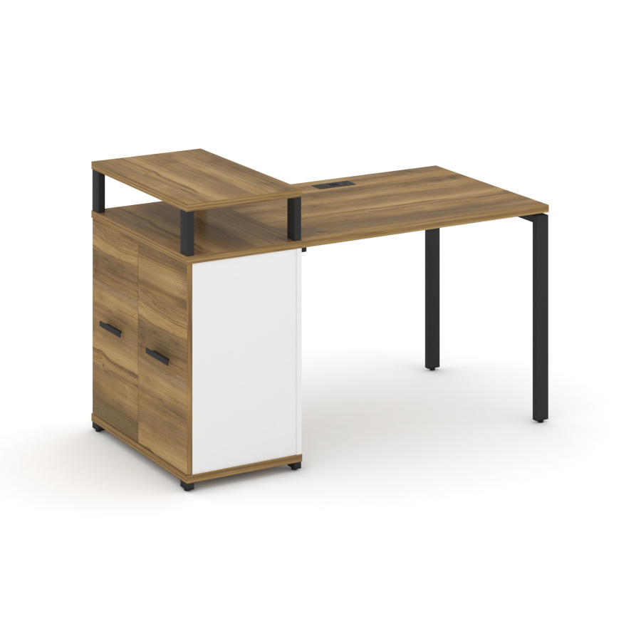 Concept Стол рабочий с опорным распаш. шкафом с верх. горизонтом CN.SP-221 W Сандал Янтарный/Белый Бриллиант/Металл Черный 1400*720*917