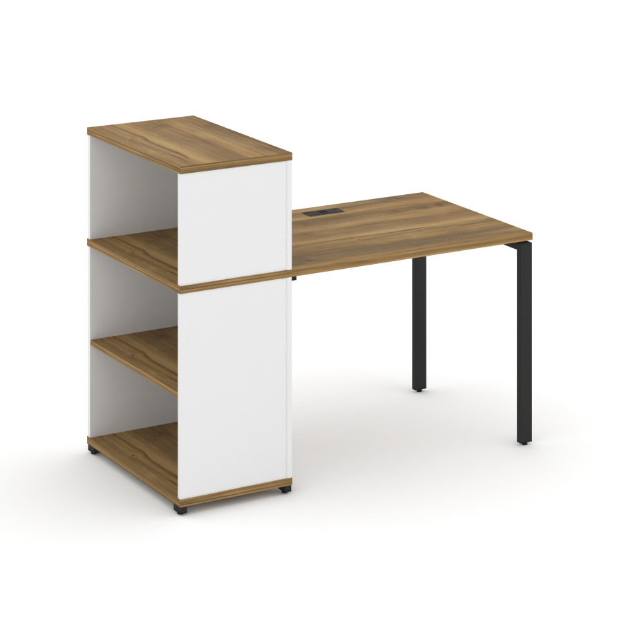 Concept Стол рабочий с опорным стеллажом с надставкой низ. CN.SP-209 Сандал Янтарный/Белый Бриллиант/Металл Черный 1400*720*1140